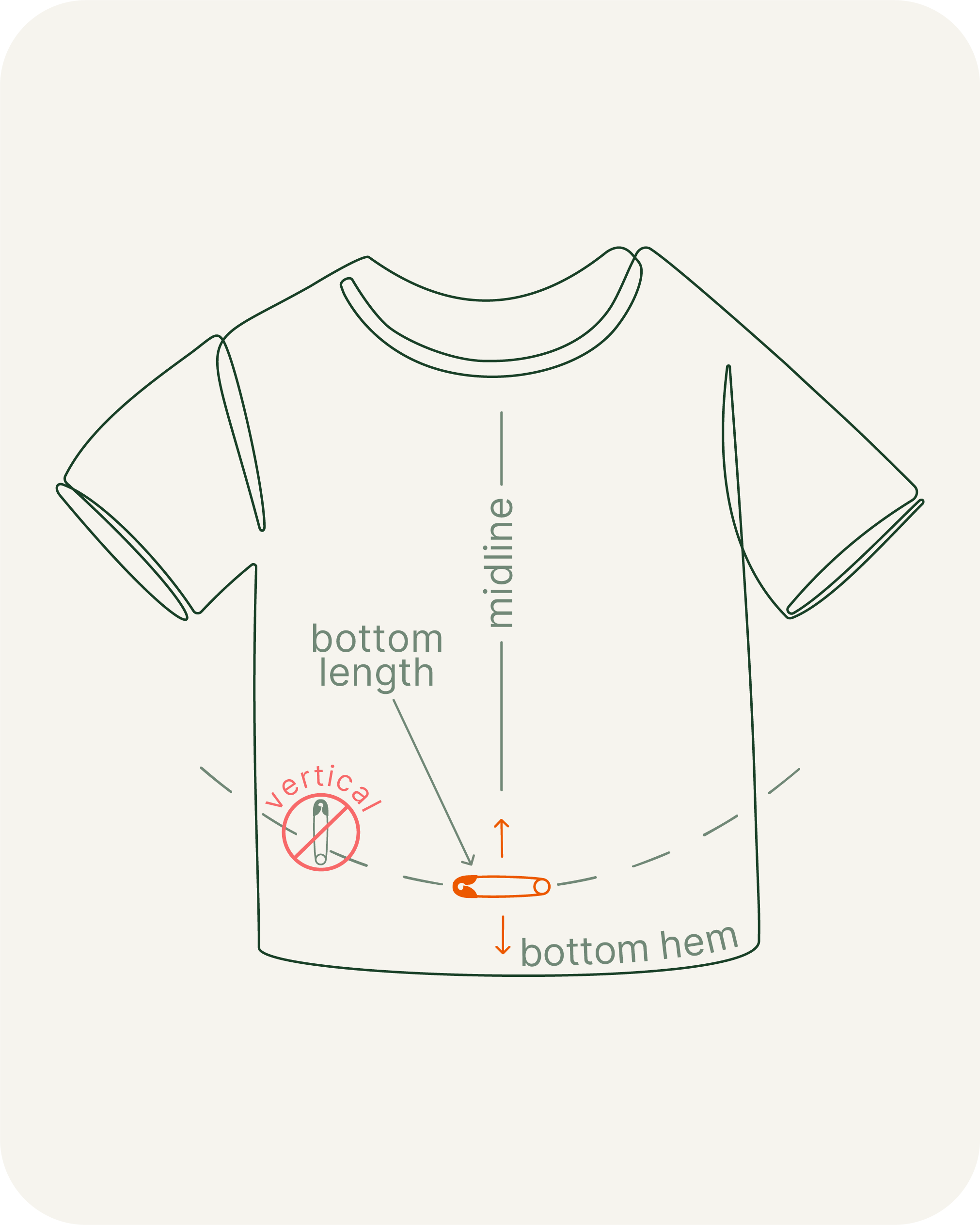 Place the safety pin parallel to the bottom hem on the item's midline at your desired length.