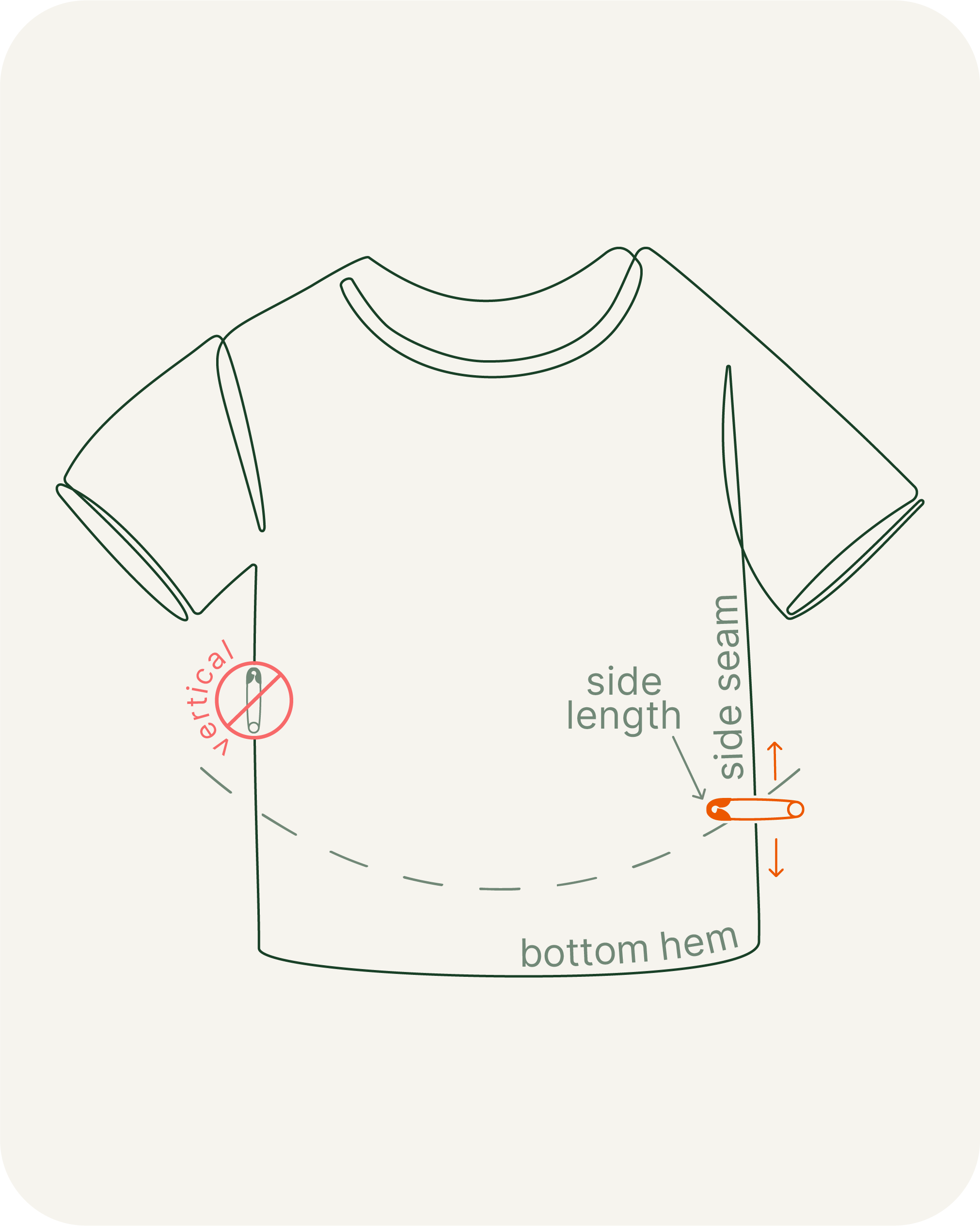 Mark your desired Bottom Length with one of the Shorten Length - Round Hem safety pins.