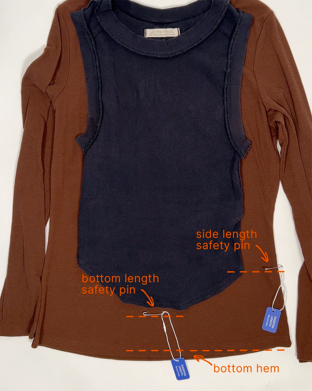 To pin this alteration, you’ll need the two Shorten Length - Round Hem safety pins from your Ship Kit.