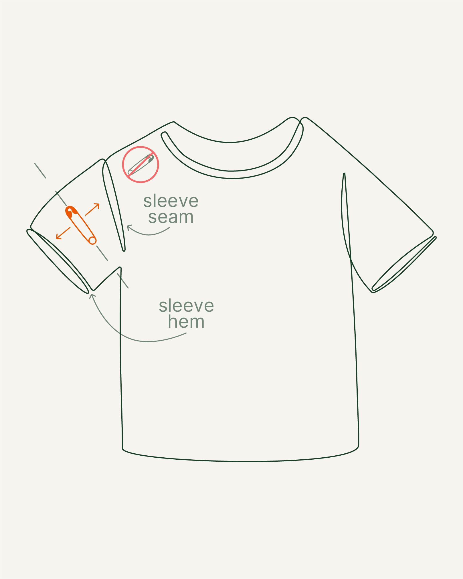 Make sure the safety pin is parallel to the sleeve hem.