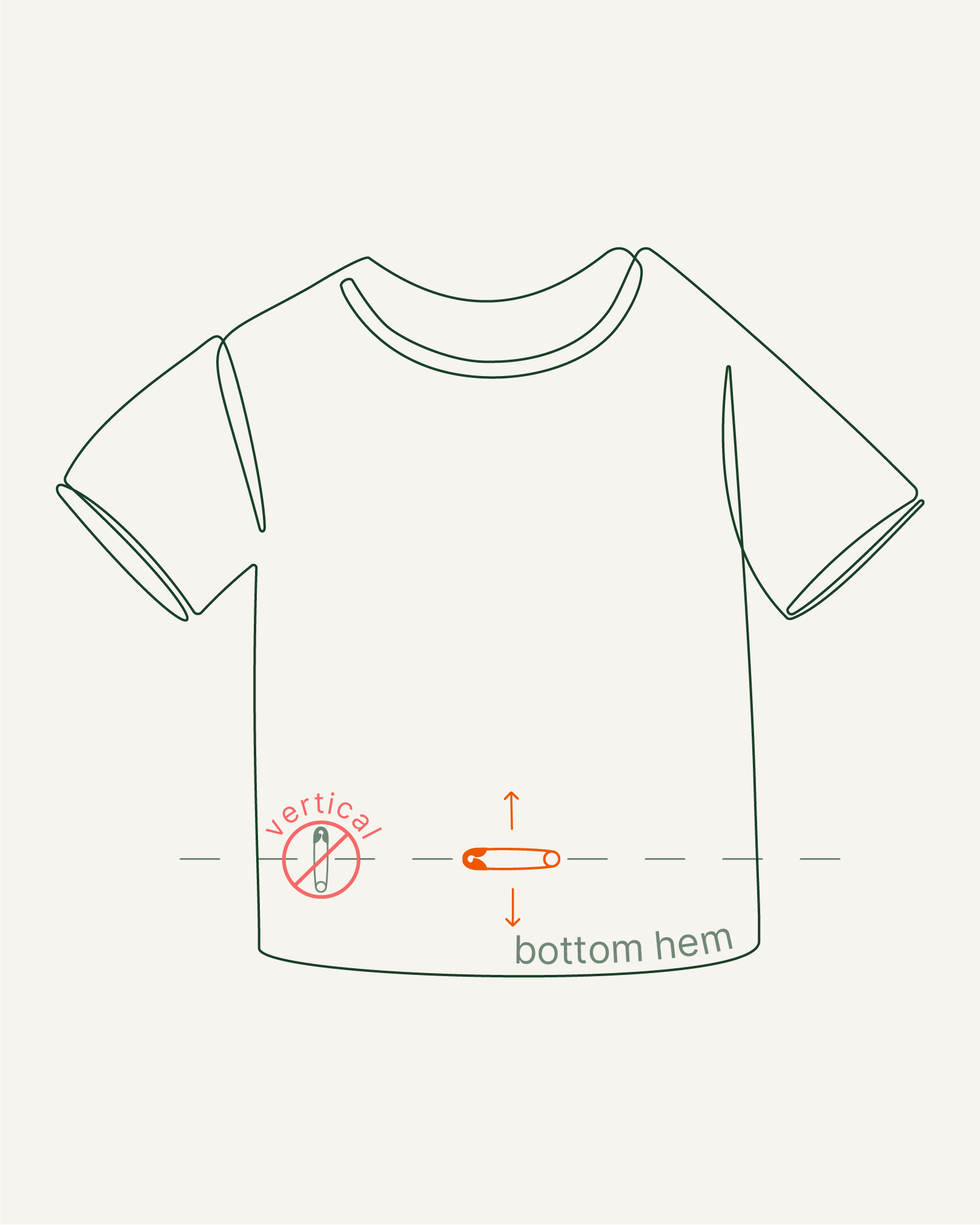 Make sure the safety pin is parallel to the bottom hem.